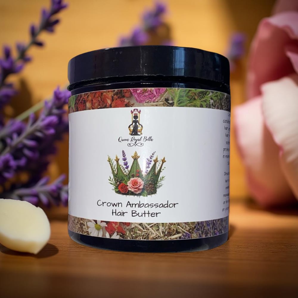 The Crown Ambassador Hair Butter deeply conditions and moisturizes hair. With over 20+ Ayurvedic herbs, butters and oils our hair butter is heaven sent. It promotes healthy hair growth, repairs and strengthens damaged hair, reduces frizz and adds natural shine. It soothes itchy scalp, reduces dandruff, minimizes shedding, protects hair from environmental damage, seals in moisture, smooths split ends and thickens hair. Suitable for women, men and children.